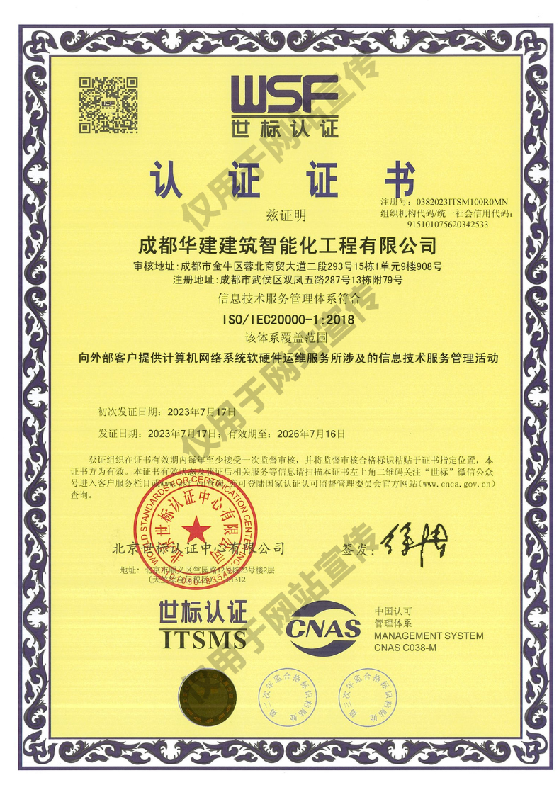 項目名稱:利豐供應鏈管理( 中國)有限公司四川分公司消防改造及配套工程; 公司簡介:項目名稱:成都市青羊區金沙雨洪下河排口AI智能視頻聯網報警監控系統項目施工單位:成都華建建筑智能化工程有限公司工程地點:...